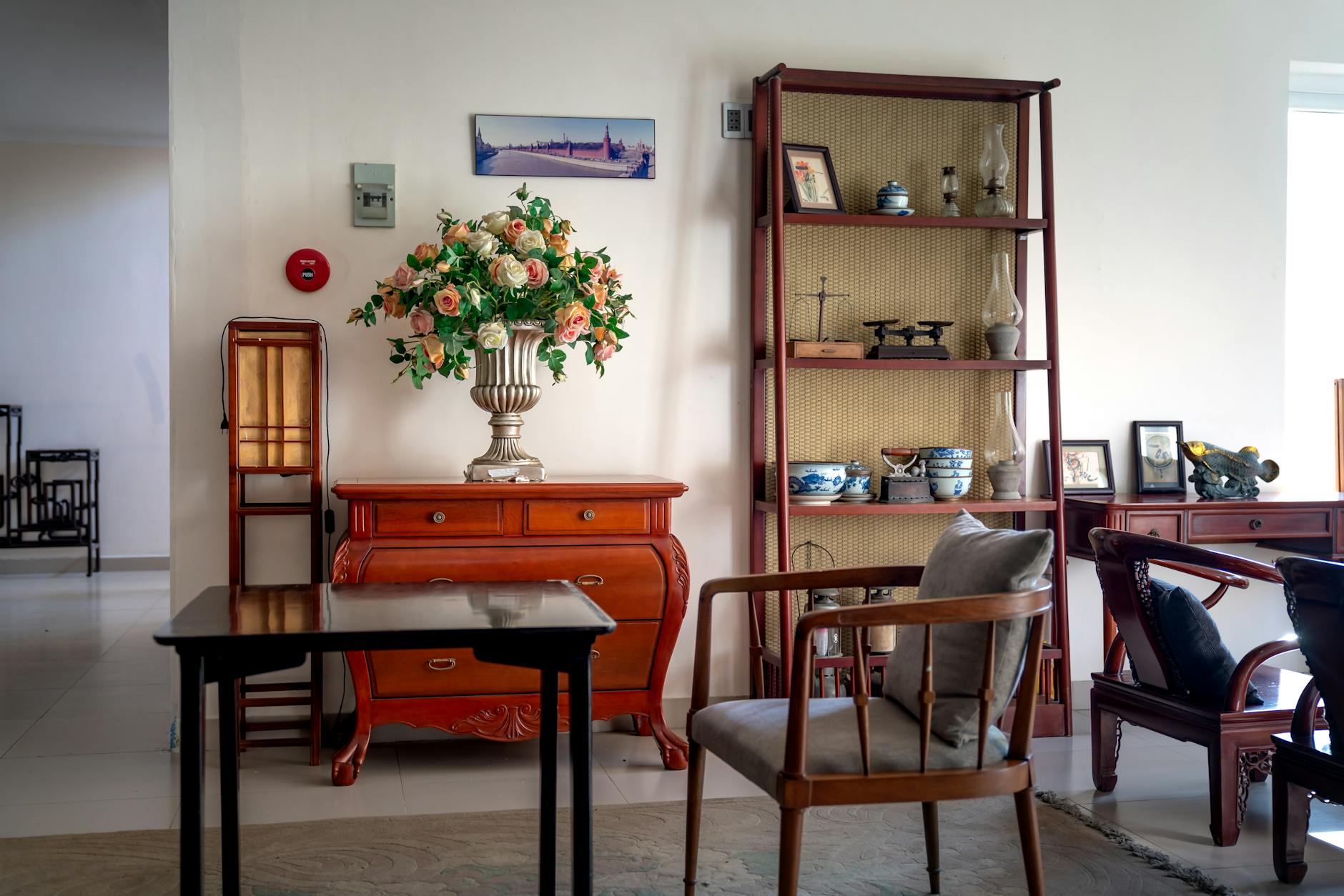 "V obývačke som umiestnila krásne skrine a komody, ktoré nielenže poskytujú dostatok úložného priestoru, ale aj dodávajú miestu elegantný a útulný vzhľad."